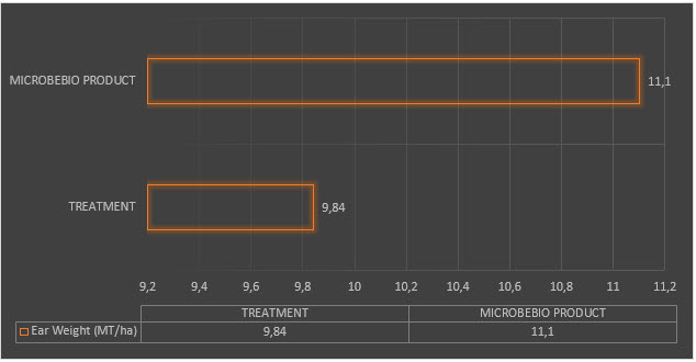 Experiment: The 4-hectare cornfield was divided areas to evaluate the effect of MicrobeBio Products and another treated on the yield in ears and leaves.