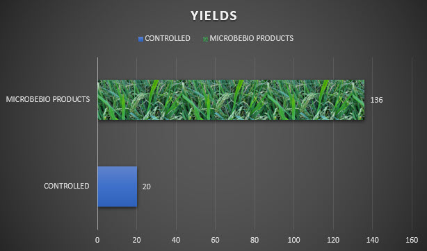 Conclusion: Rice plants are often growing on the flooded rice paddies. MicrobeBio is successful in growing rice plants on the dry soil in Iloilo. The result performs the one hectare of growing rice plants treated by MicrobeBio products presenting 136 sacs to compare to another controlled one hectare of growing rice plants only presenting 20 sacs at the same time treatment and area.
