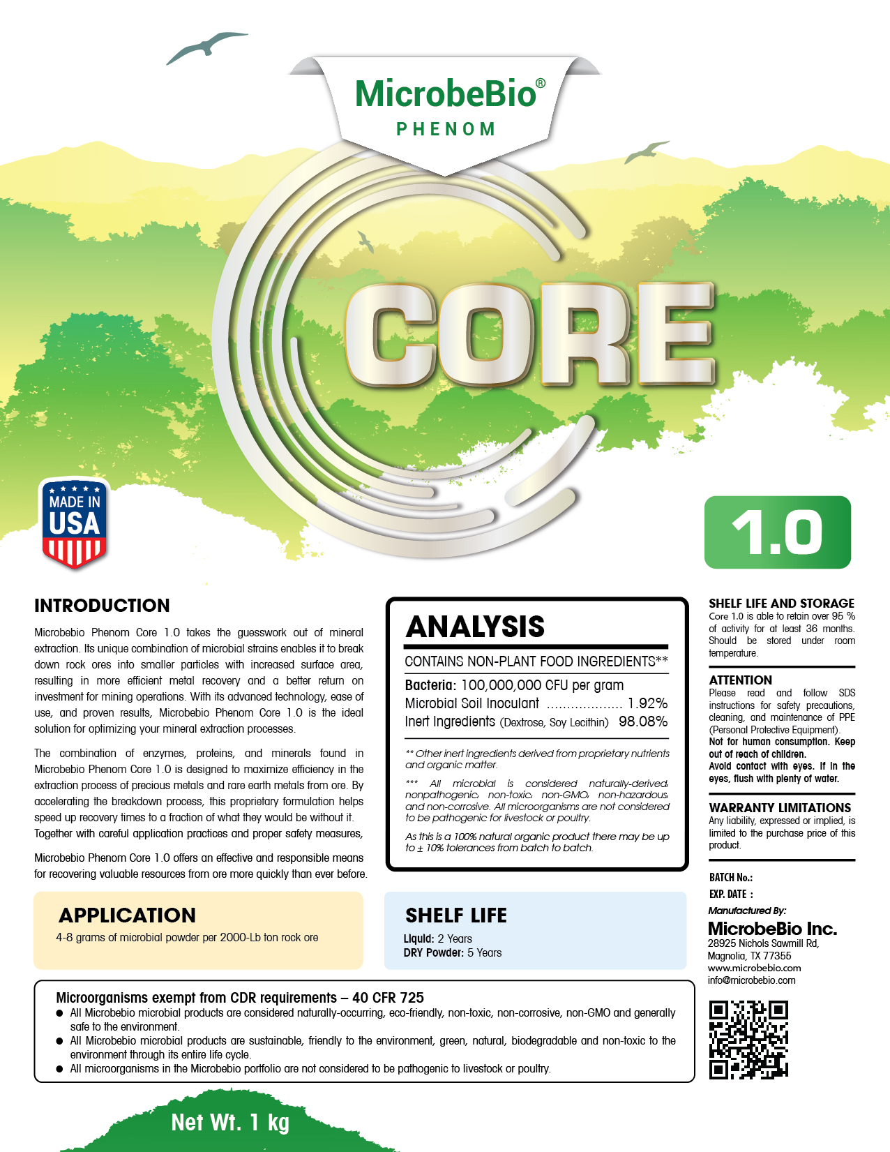 Together with careful application practices and proper safety measures, MICROBEBIO® Phenom Core 1.0™ offers an effective and responsible means for recovering valuable resources from ore more quickly than ever before.