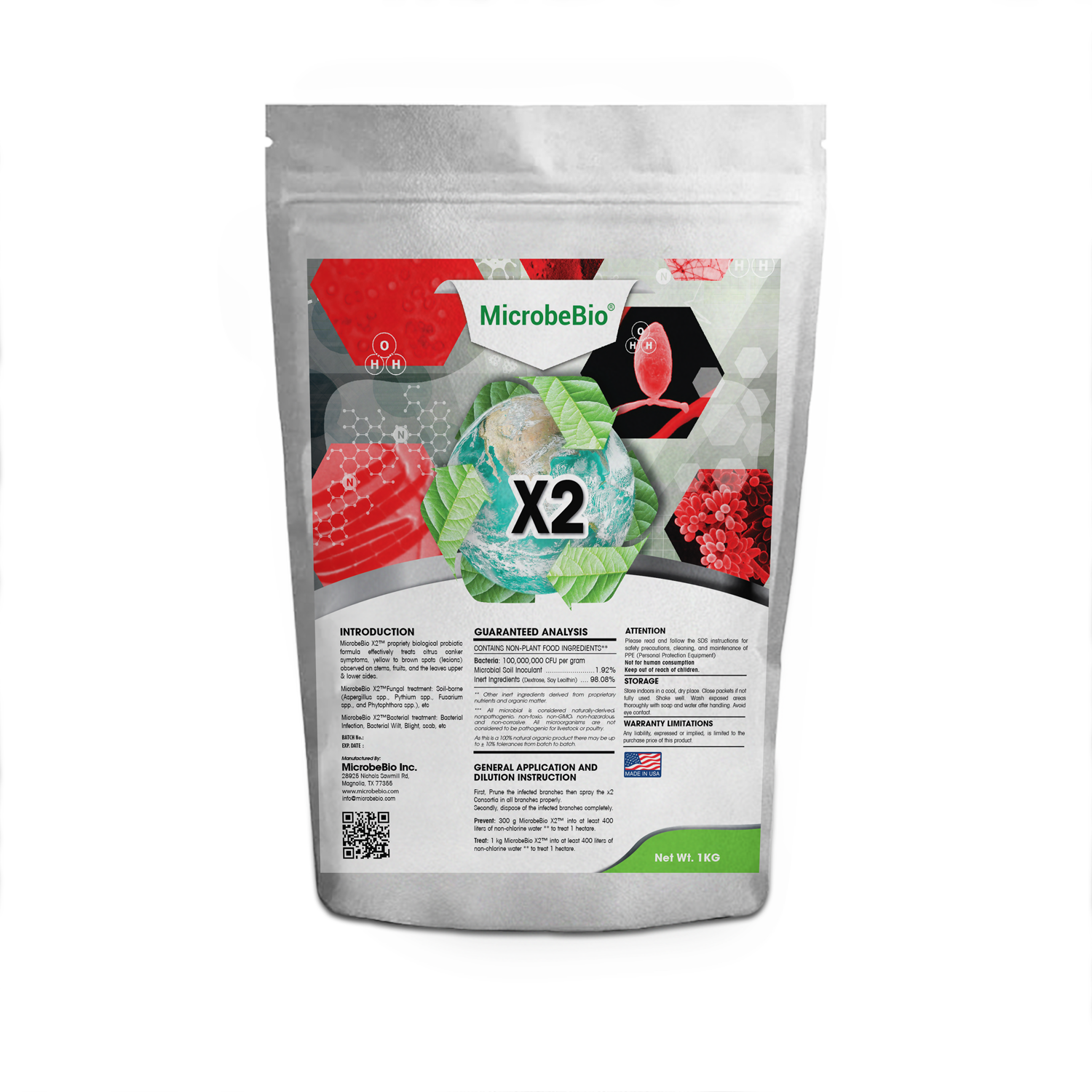 MicrobeBio X2™ se presenta como una fórmula biológica probiótica innovadora, cuidadosamente elaborada para combatir los síntomas de la cancrosis citrica mientras mantiene un enfoque ecológico. Este producto aprovecha el poder de ingredientes naturales para atacar hongos transmitidos por el suelo, incluyendo Aspergillus spp., Pythium spp., Fusarium spp., y Phytophthora spp.. También actúa como una defensa potente contra infecciones bacterianas, marchitez bacteriana, tizón, costra y otros problemas comunes que afectan a las plantas cítricas. Tras su aplicación, verás la desaparición gradual de las lesiones de color amarillo a marrón en tallos, frutos y en ambos lados de las hojas. MicrobeBio X2™ ofrece una solución robusta para aquellos que buscan prevenir o curar la enfermedad de la cancrosis citrica provocada por infecciones fúngicas o bacterianas.