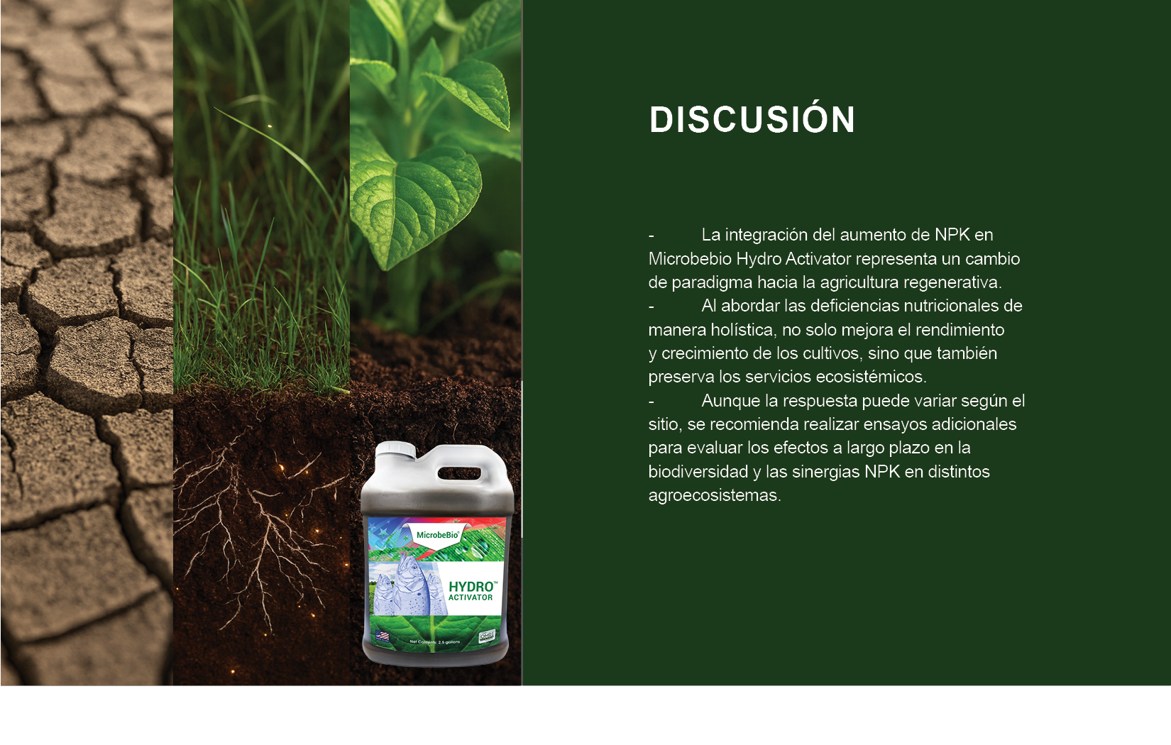 – La integración del aumento de NPK en Microbebio Hydro Activator representa un cambio de paradigma hacia la agricultura regenerativa.