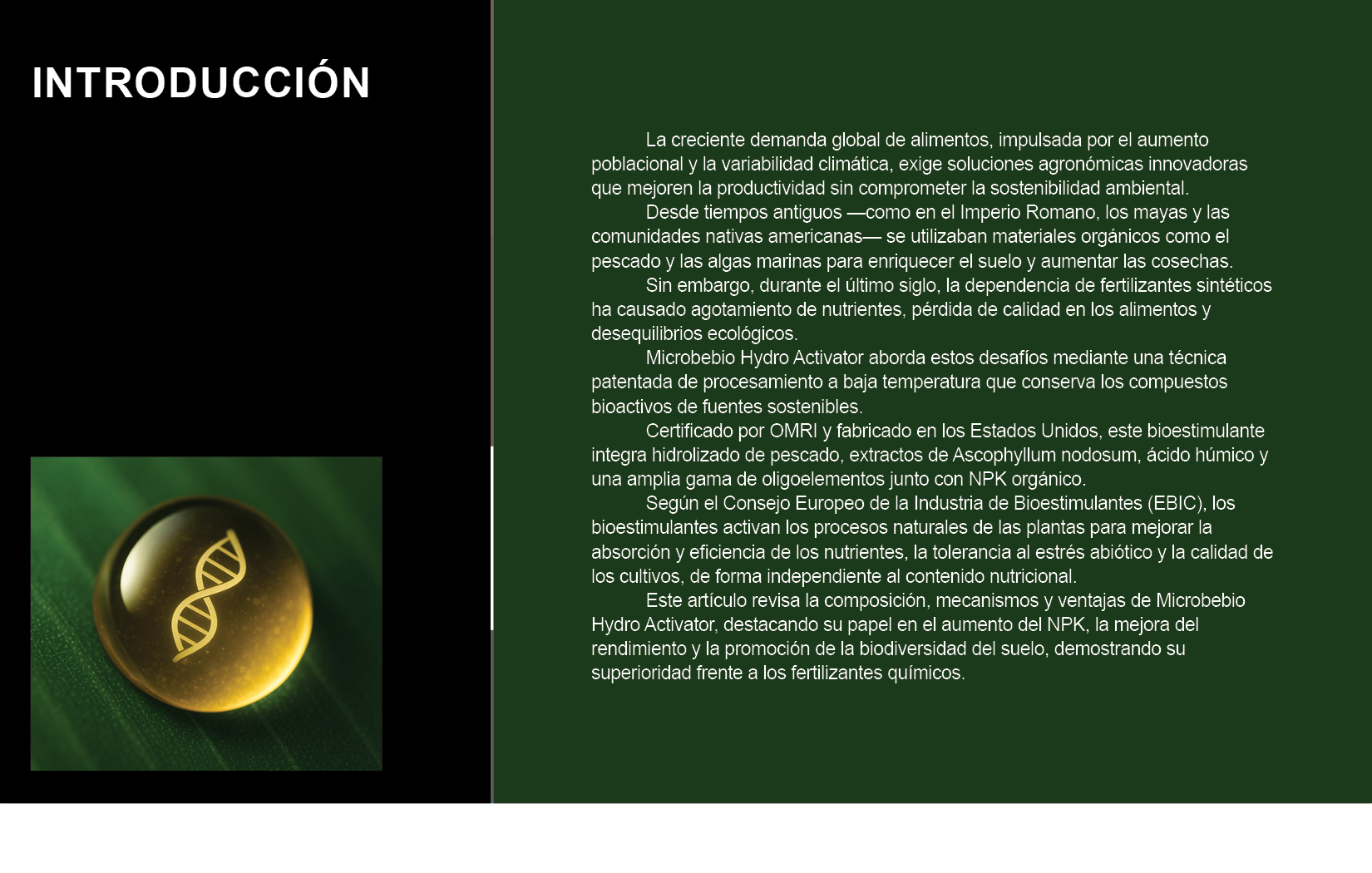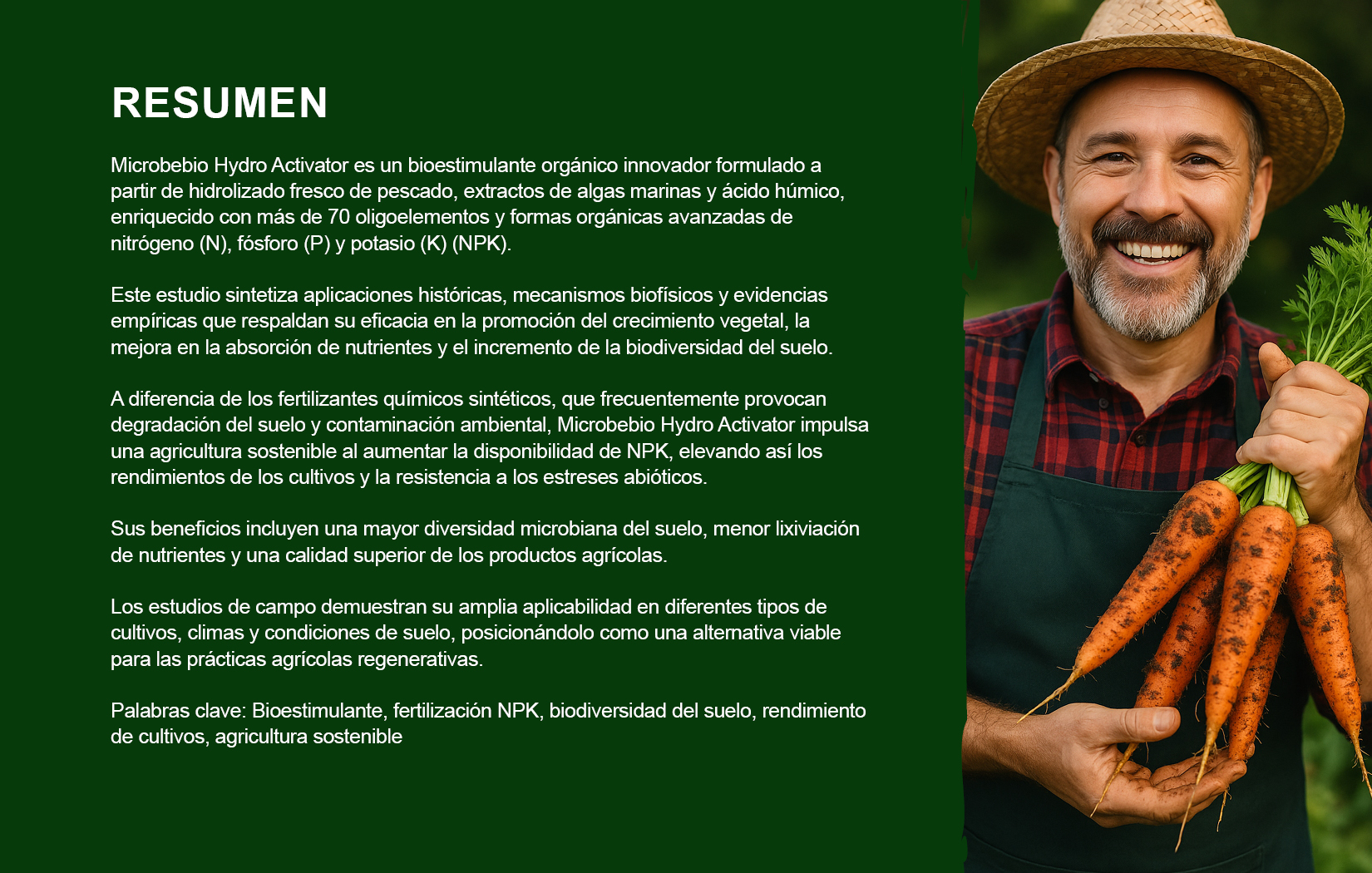 Este artículo revisa la composición, mecanismos y ventajas de Microbebio Hydro Activator, destacando su papel en el aumento del NPK, la mejora del rendimiento y la promoción de la biodiversidad del suelo, demostrando su superioridad frente a los fertilizantes químicos.
