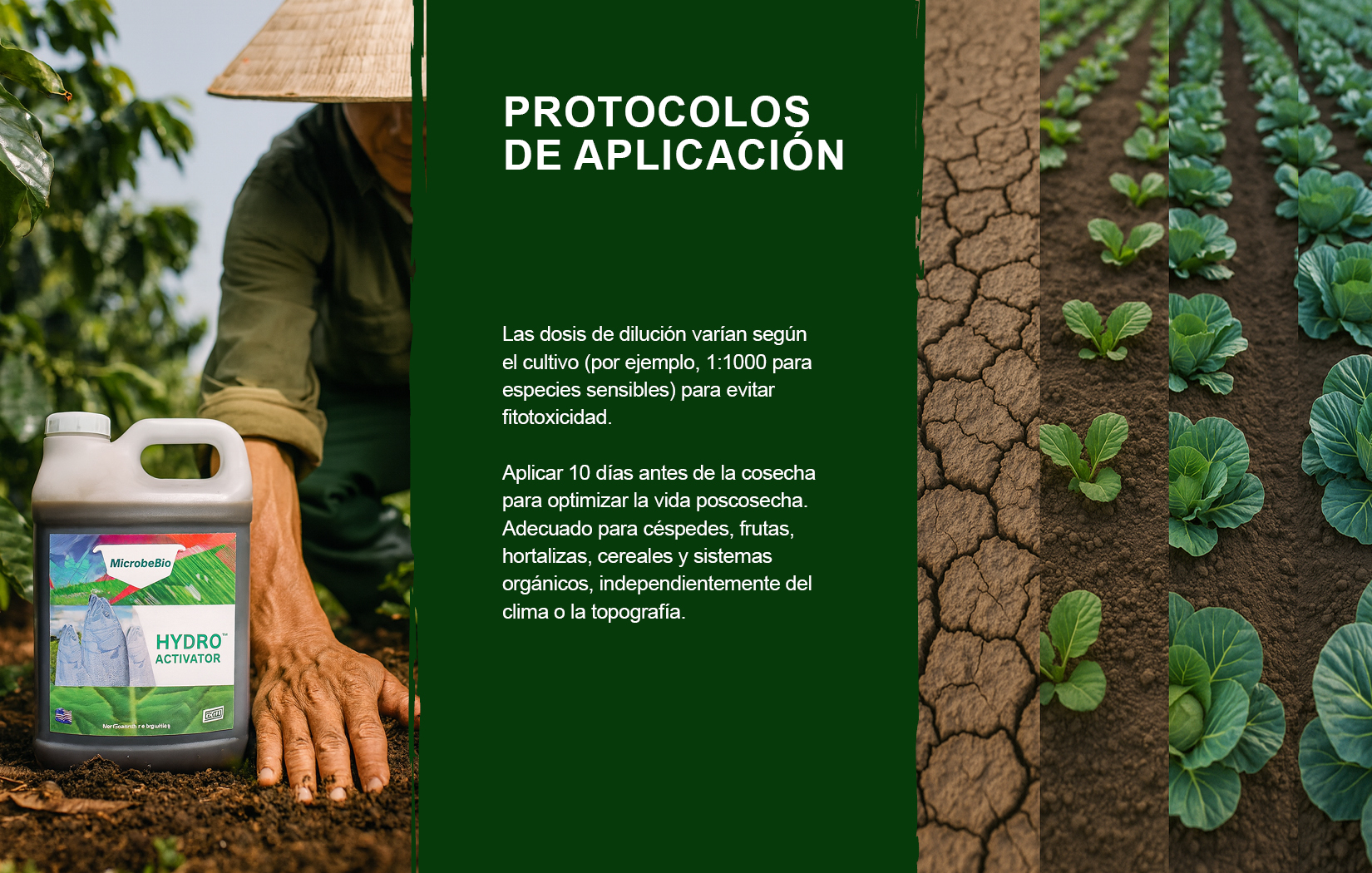 – La aplicación foliar acelera la respuesta sistémica, mientras que la aplicación al suelo mejora la regeneración biológica de la rizosfera.