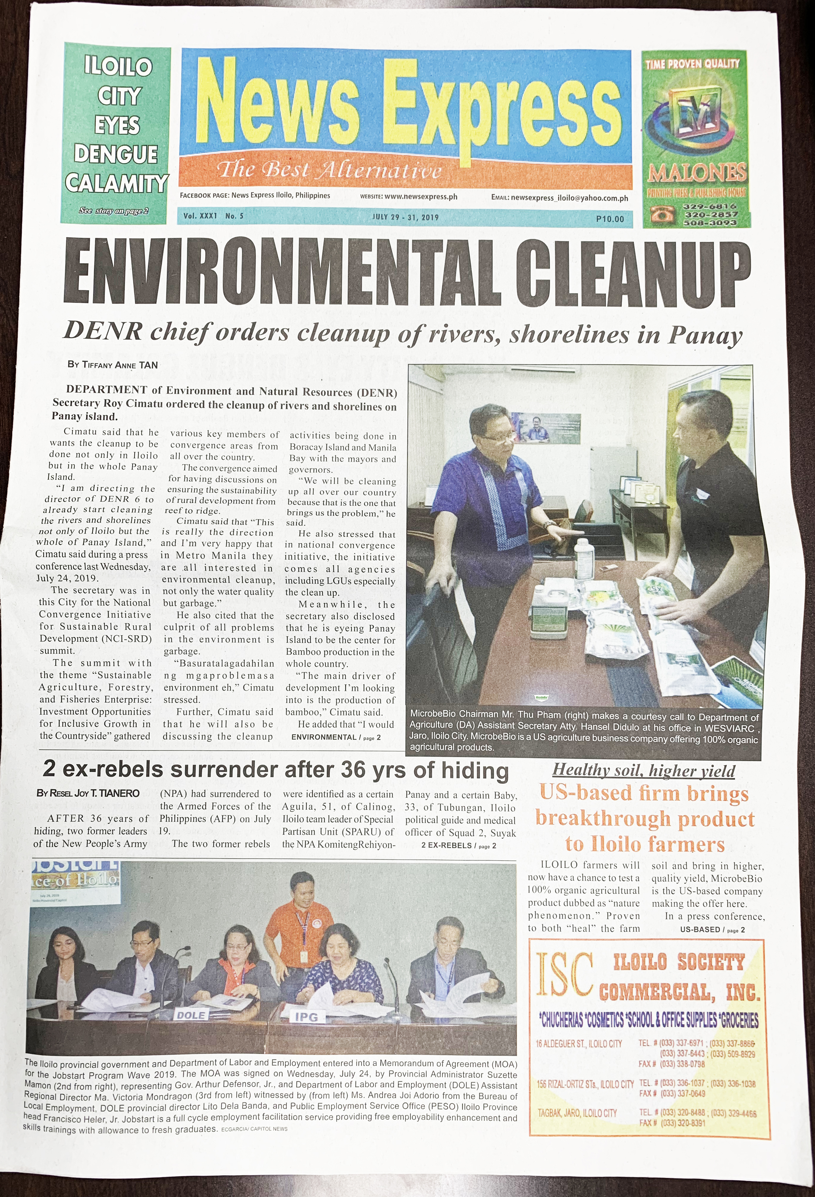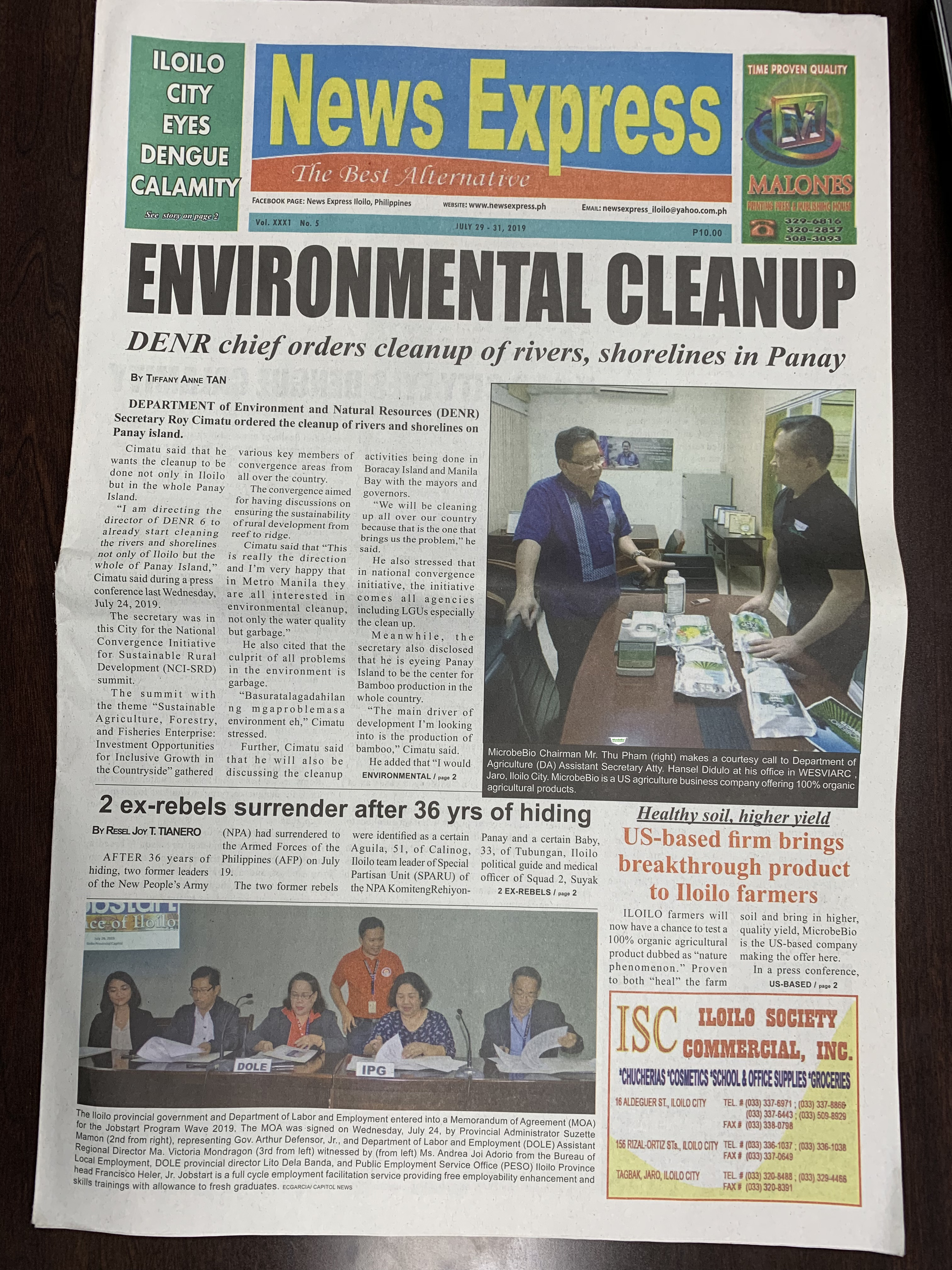 “Microbebio Chairman Mr. Thu Pham made a courtesy call to Gov Arthur “Toto” Defensor, Jr. on July 25, 2019. Microbebio is a US agriculture business company offering 100% organic agricultural products”
