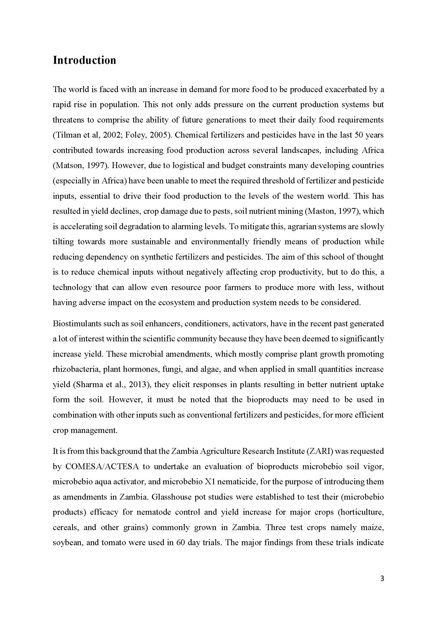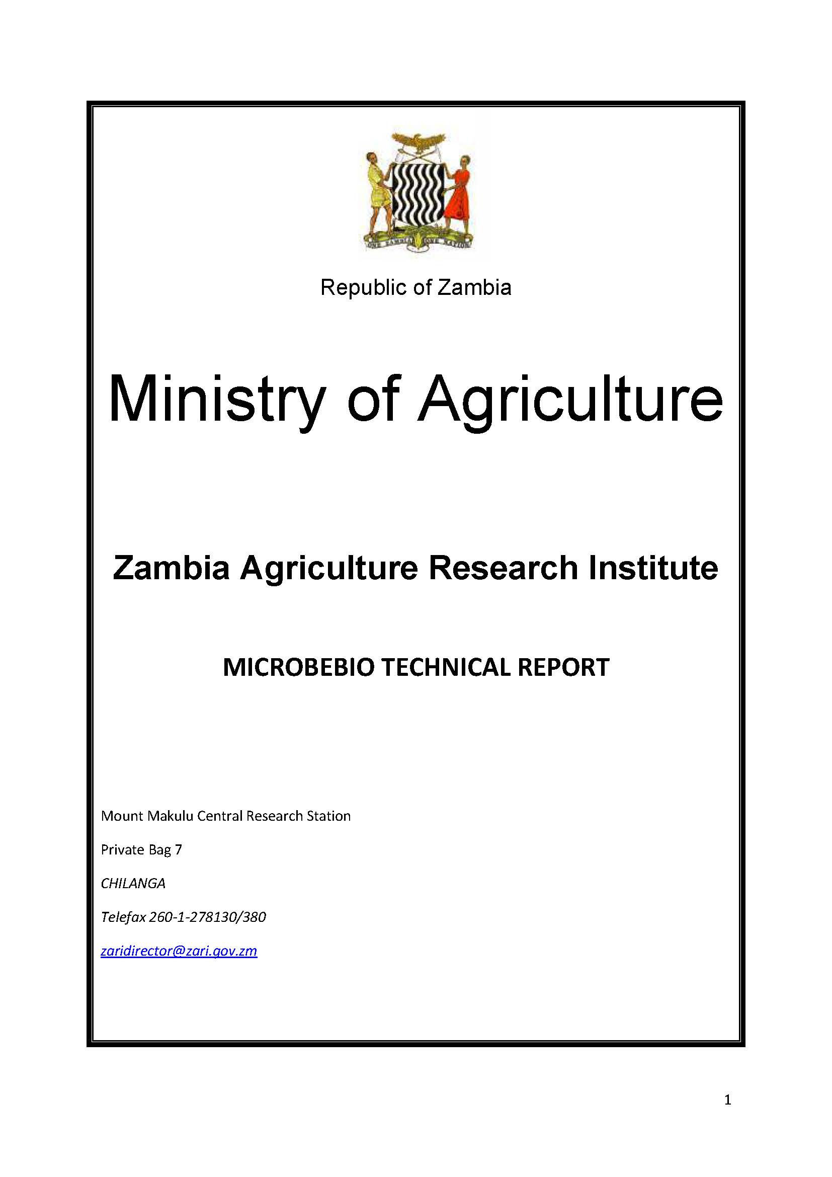 Microbial fertilizer Organic Fertilizer USA > Zambia Agriculture Research Institute – MicrobeBio Technical Report
